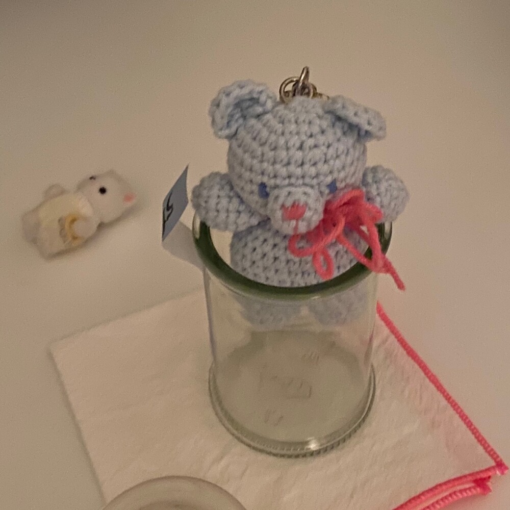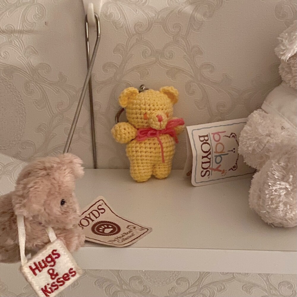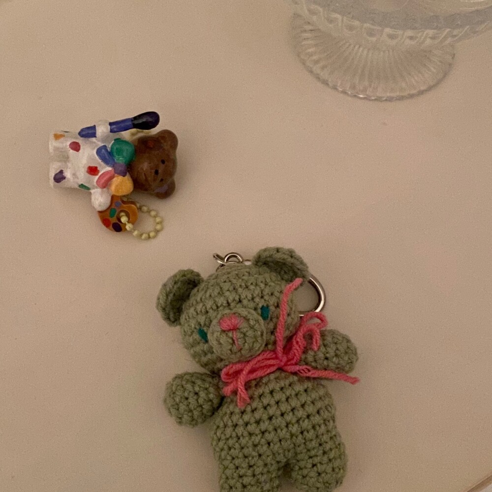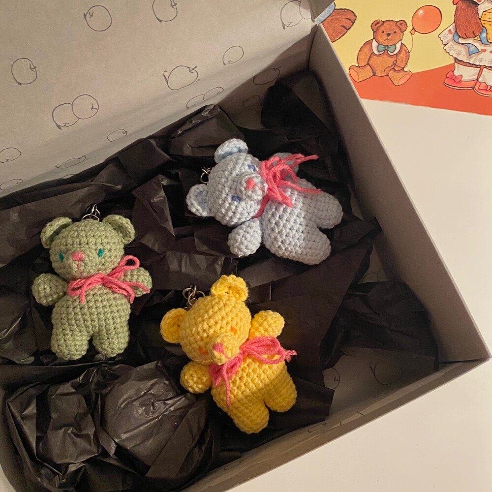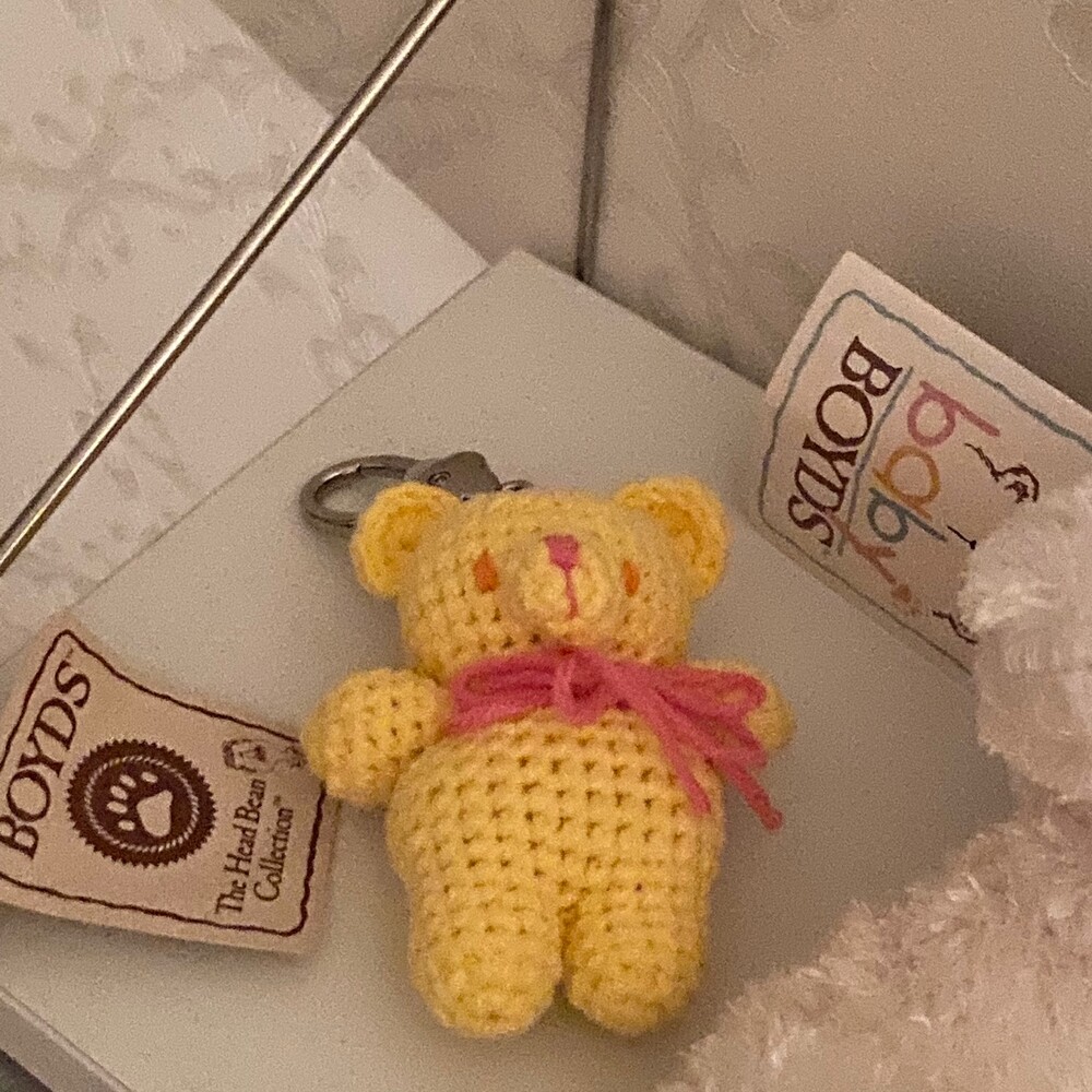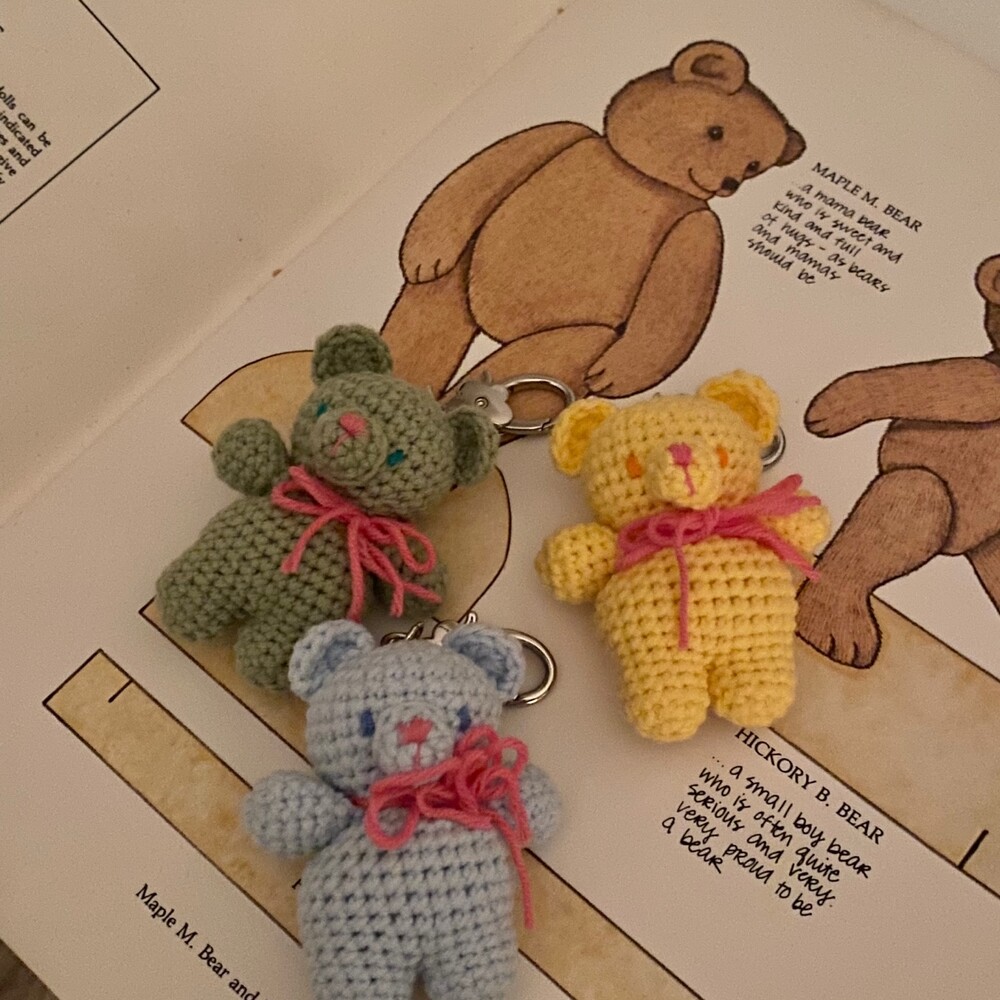 Benny knitting ribbon bear keyring