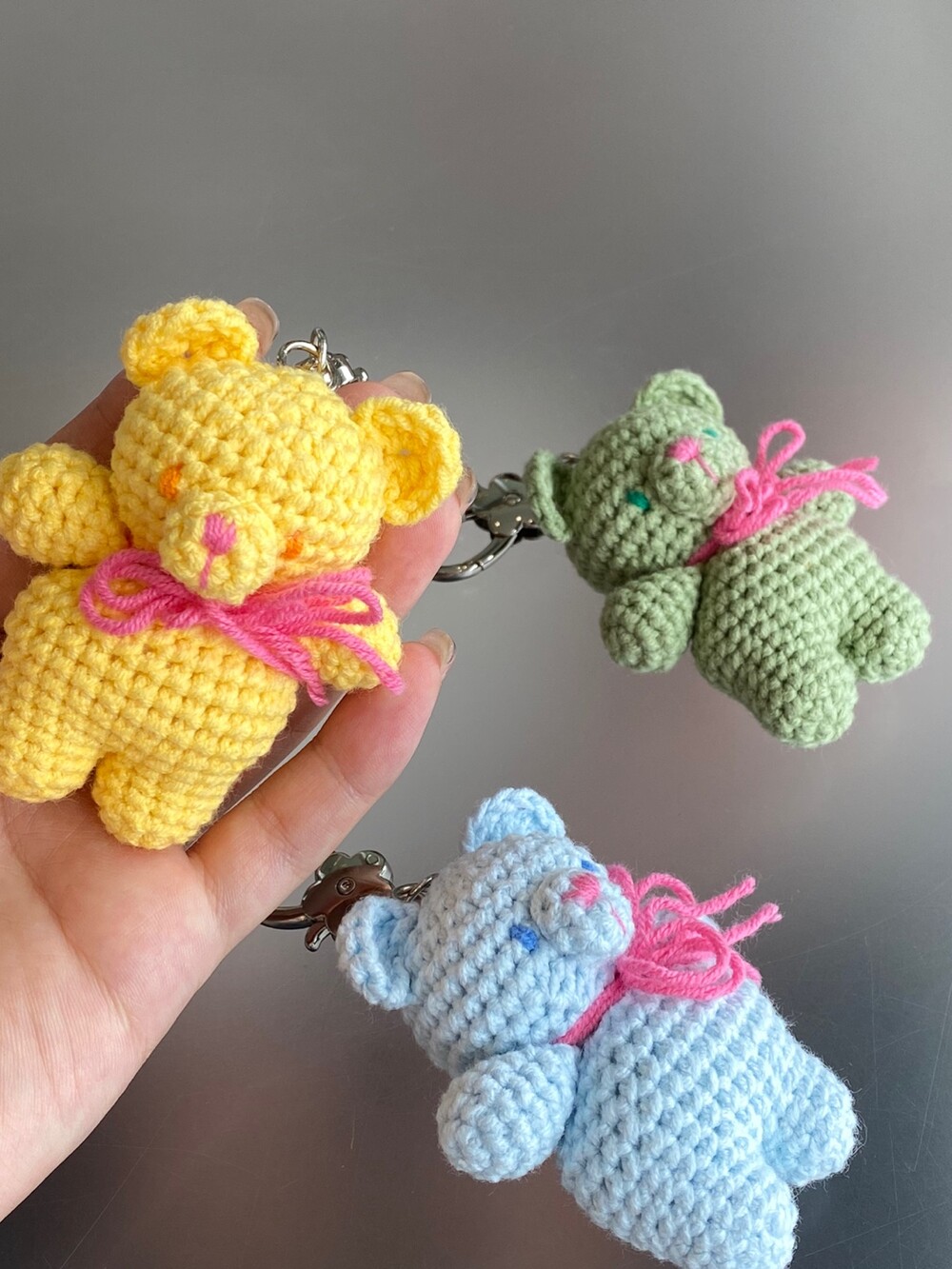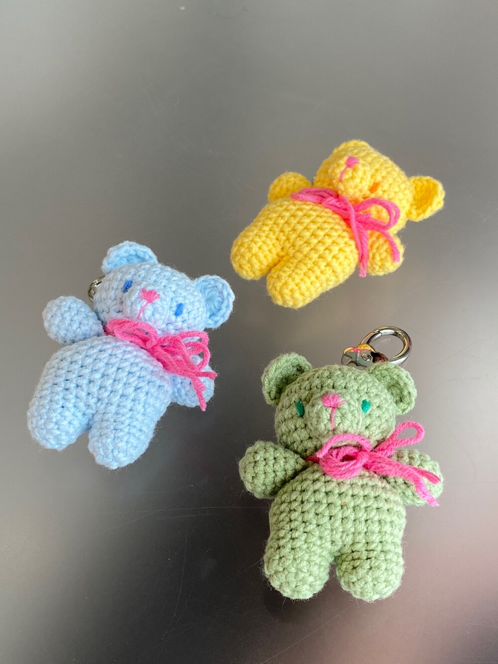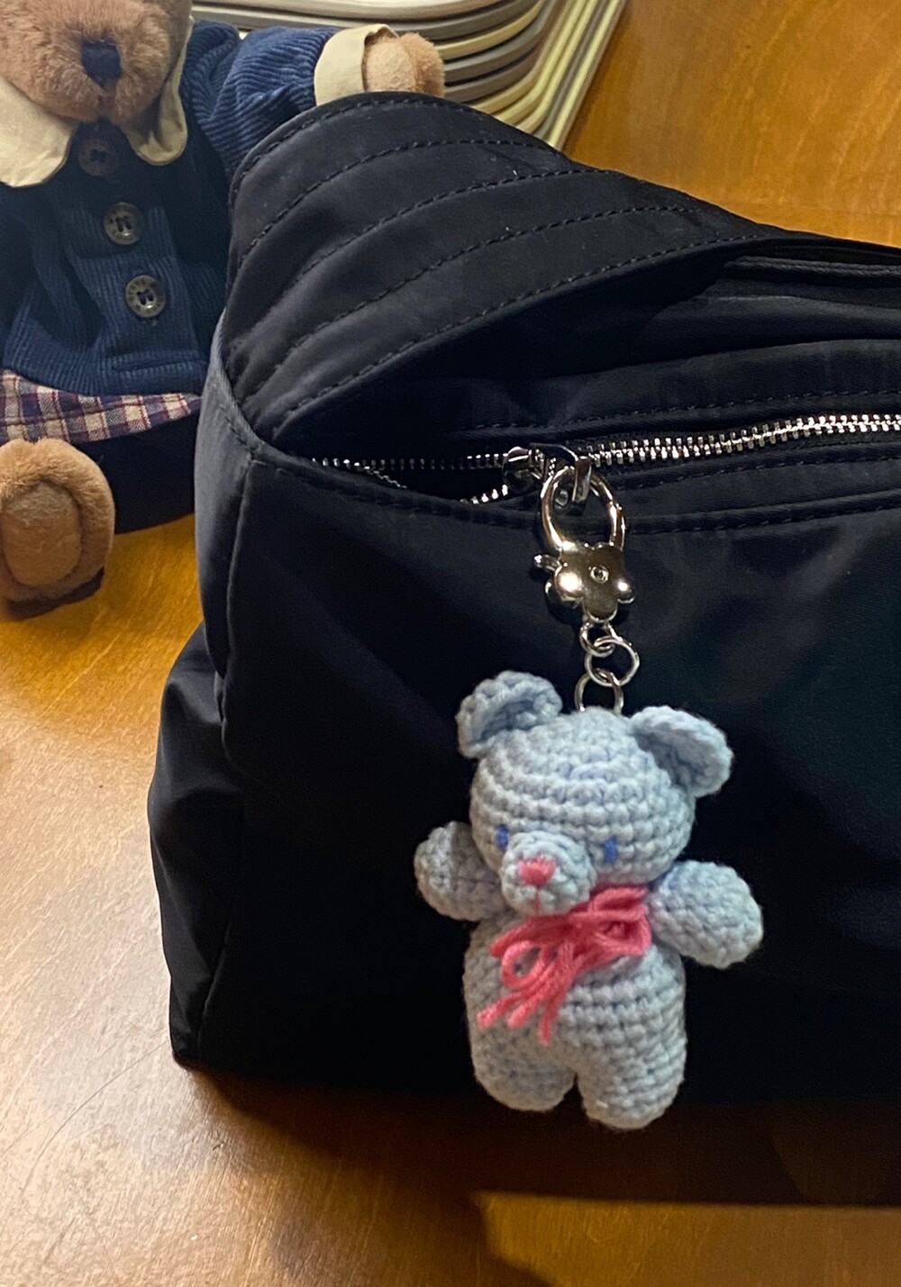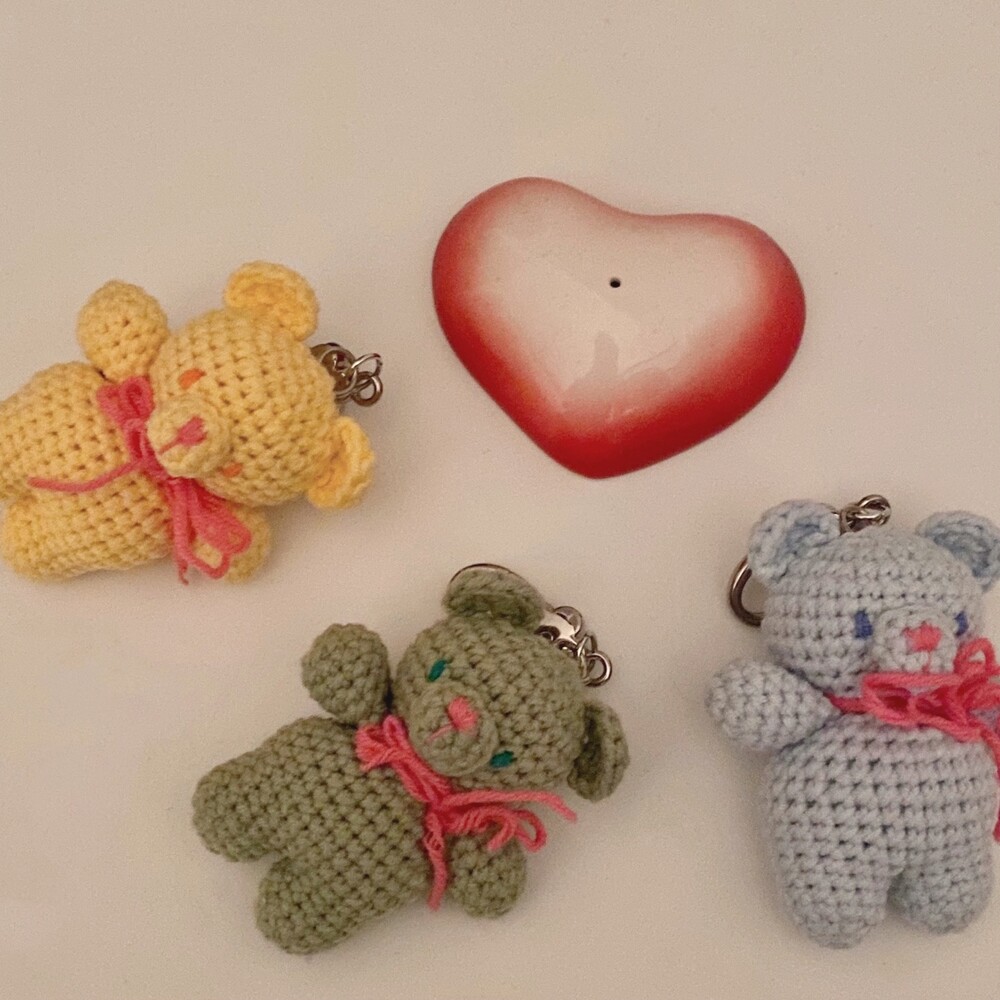 Benny knitting ribbon bear keyring