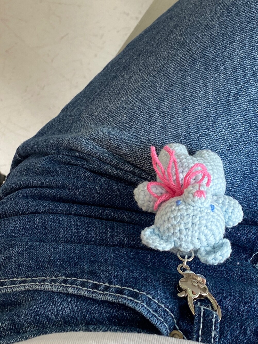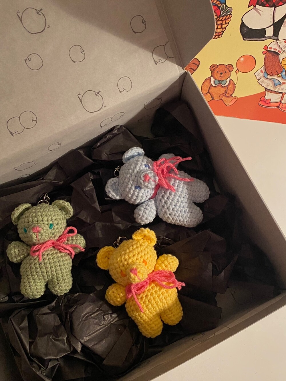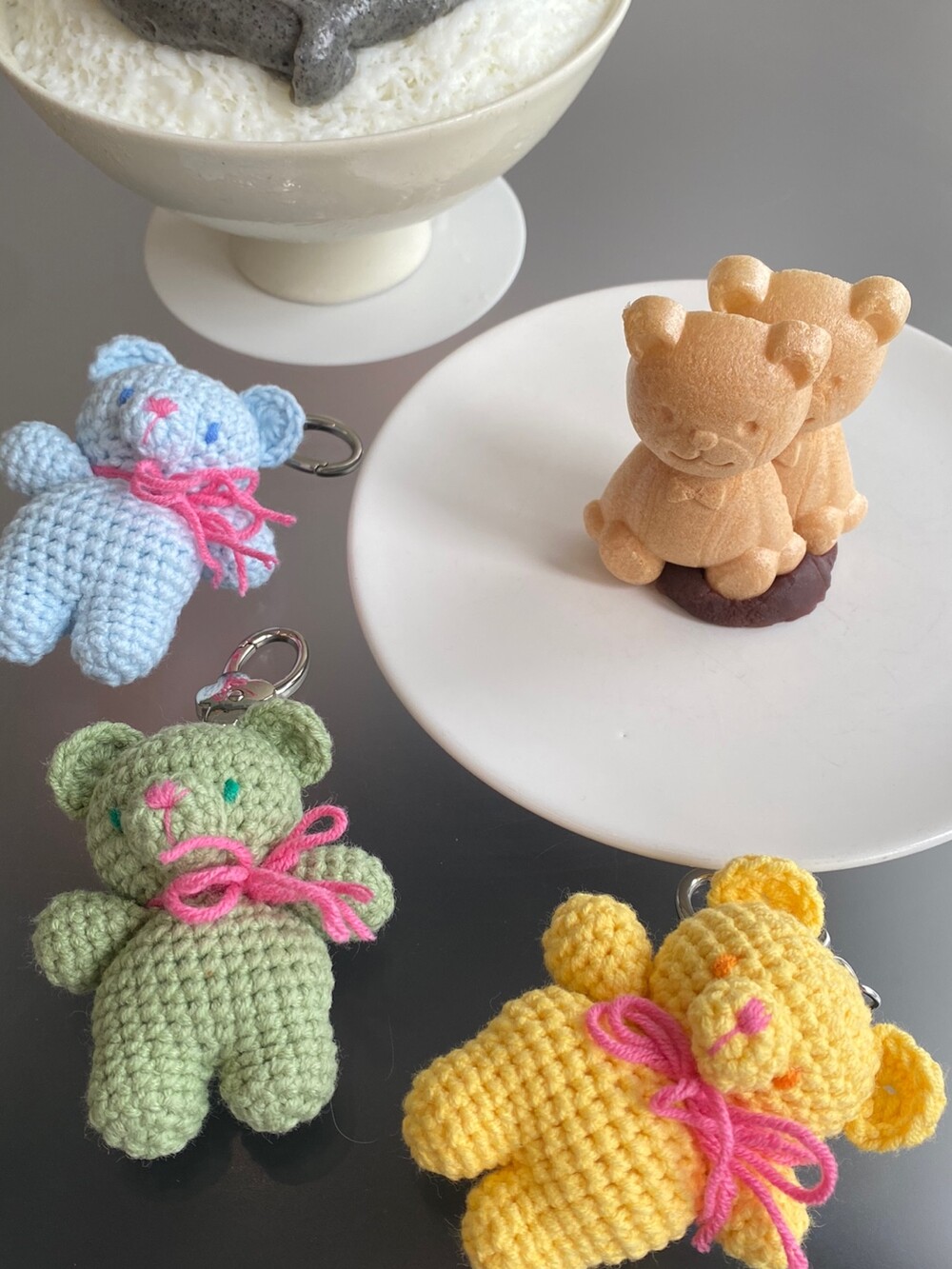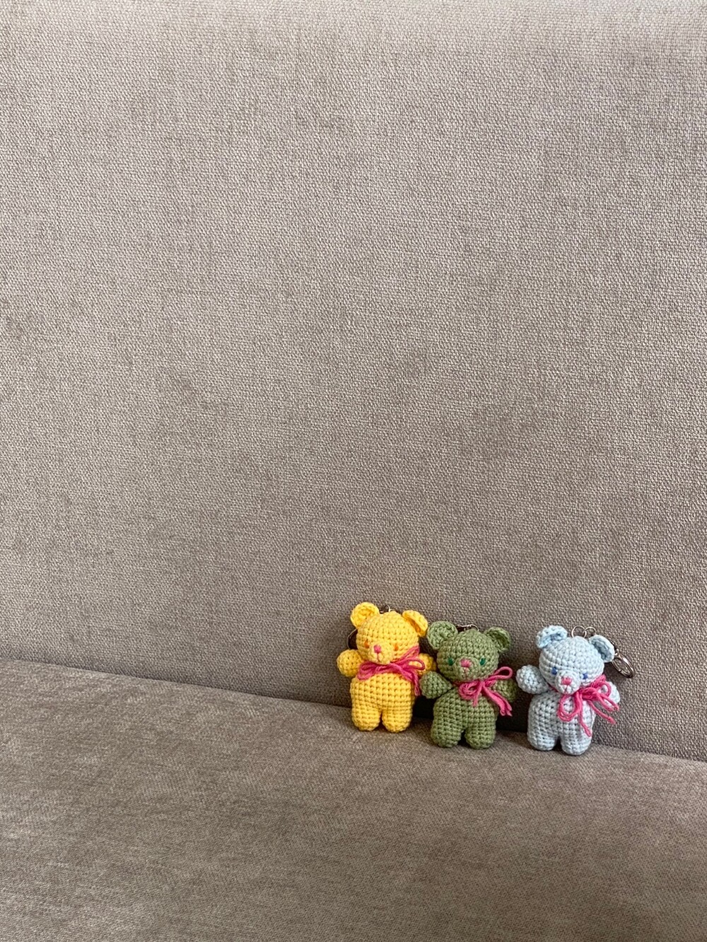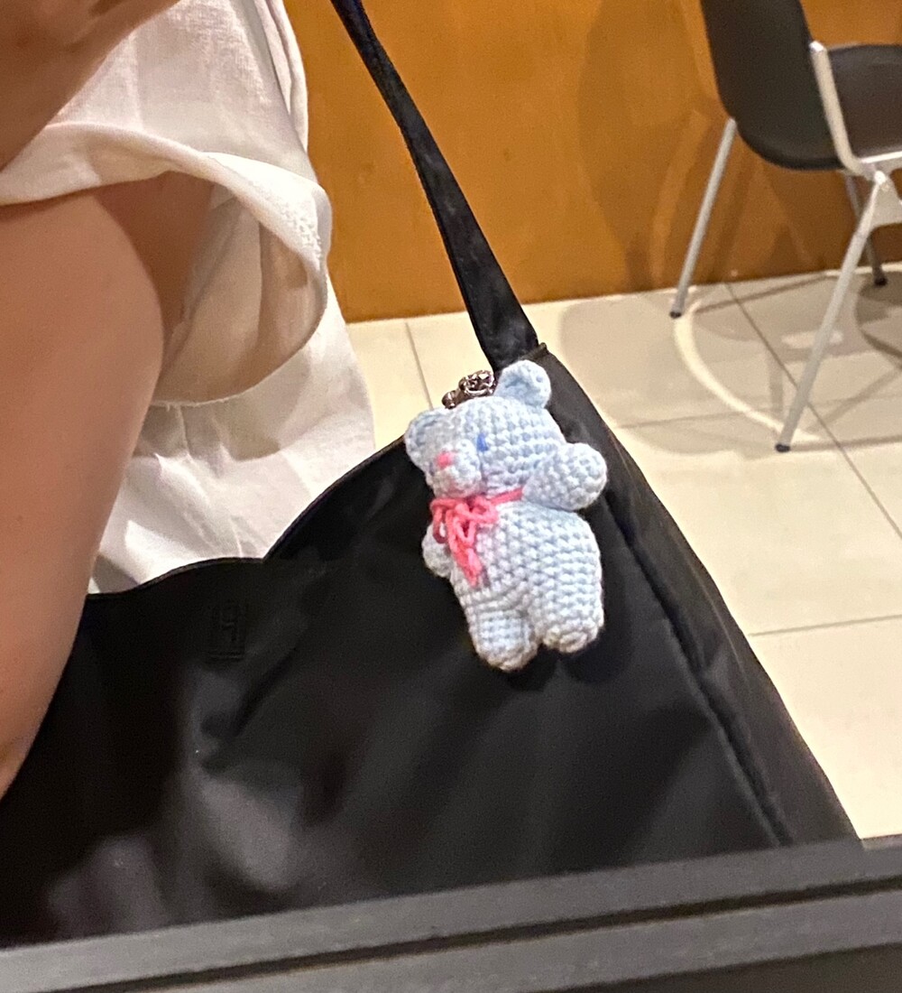 Benny knitting ribbon bear keyring