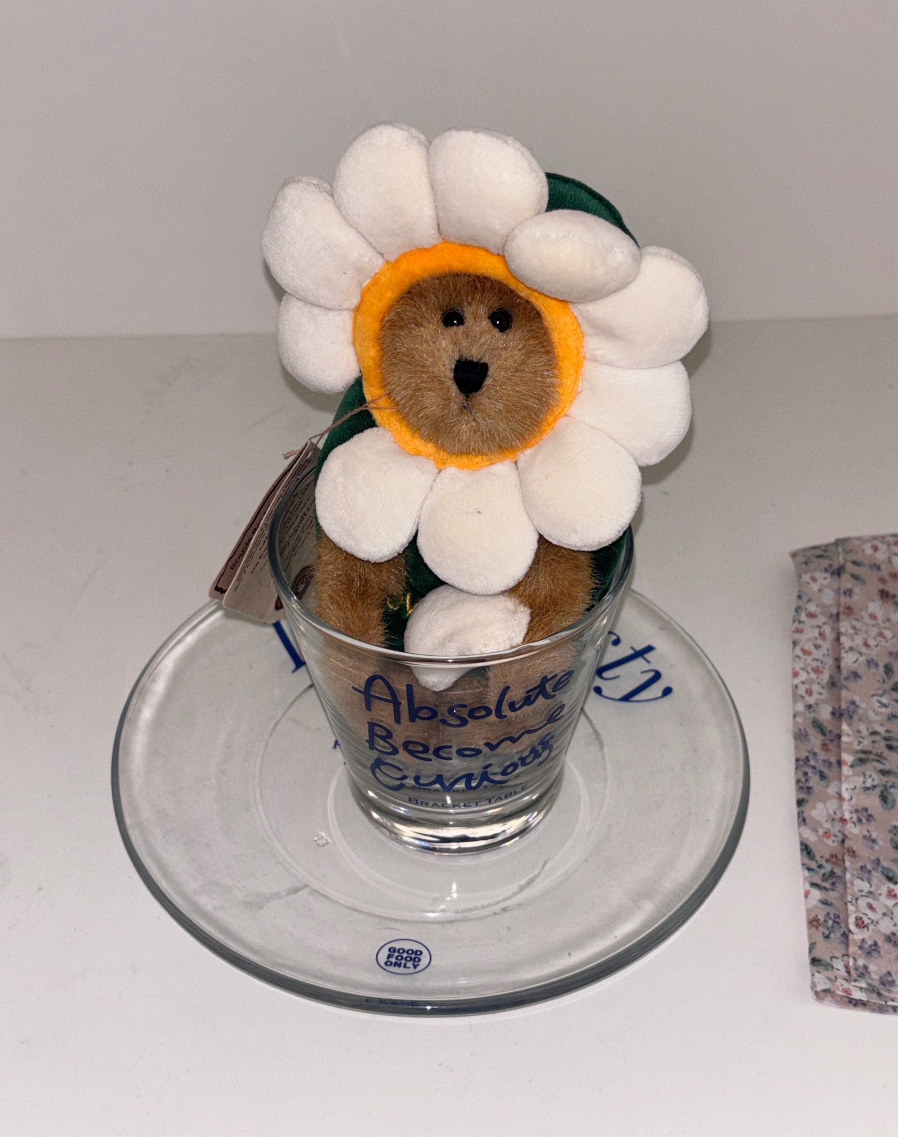 한 손에 꽃잎을 들고 있는 데이지 베어로,
